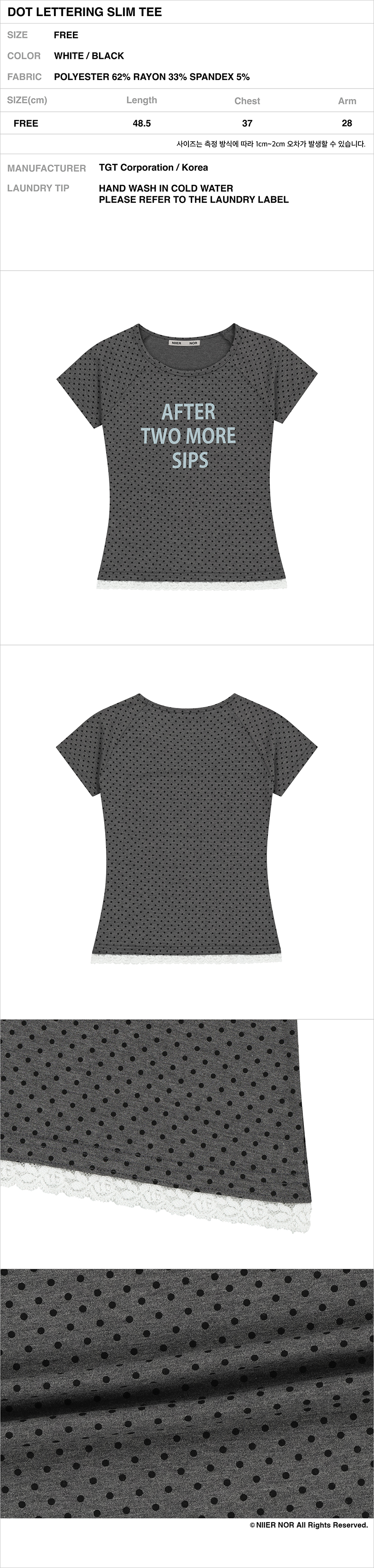 NIIER NOR Dot Lettering Slim Tee Charcoal