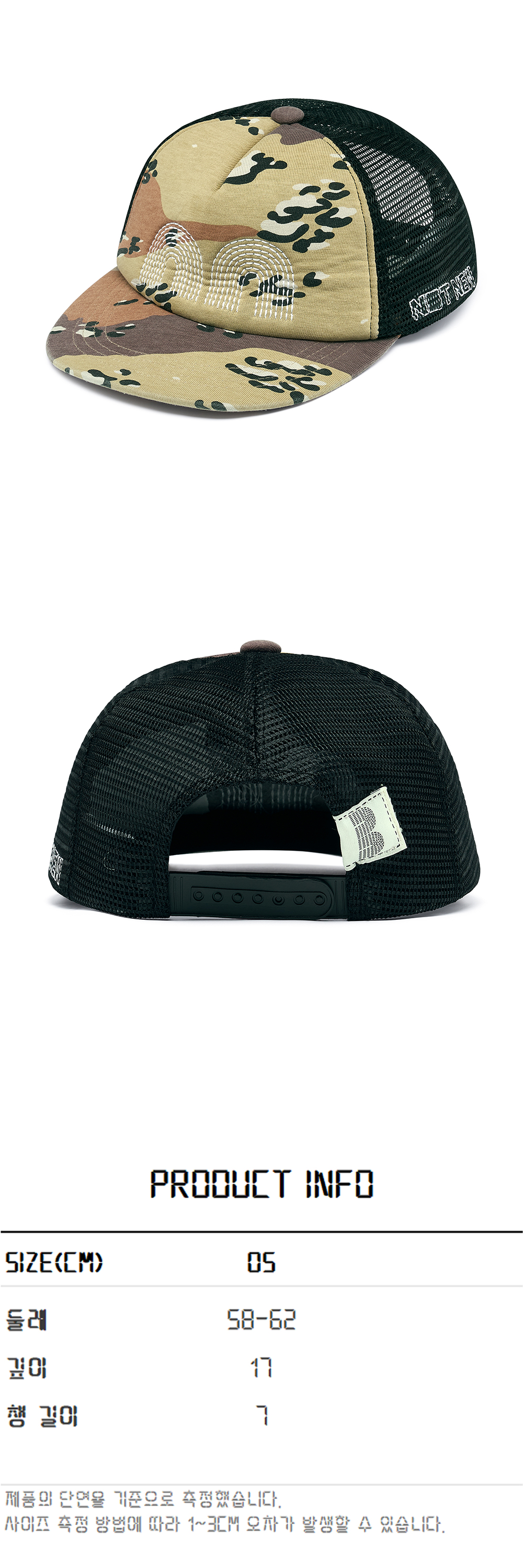 - 메쉬 원단으로 제작되어 통기성이 우수하며, 일상에 자연스럽게 스며드는 실용적인 아이템입니다. - 사이드 자수 디테일과 뒷면의 포인트 라벨이 더해져 은은한 낫뉴만의 감도를 전합니다. - 그린, 옐로우, 블랙, 브라운, 카모 총 5가지 컬러로 다양한 분위기의 스타일링이 가능합니다. - 얼굴형과 성별에 구애 없이 자연스럽게 어우러지는 유니섹스 핏으로 완성되었습니다. - 데일리룩은 물론, 여행이나 야외 활동 등 다양한 상황에서 폭넓게 활용할 수 있습니다. - 앞면 면100%, 뒷면 폴리 100% ONE SIZE 둘레 58~62cm 깊이 17cm 챙 길이 7cm