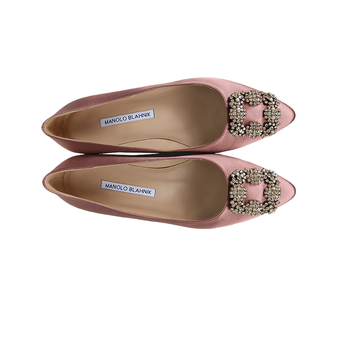 (W) 마놀로 블라닉 한기시 사틴 쥬얼 버클 플랫 다크 핑크