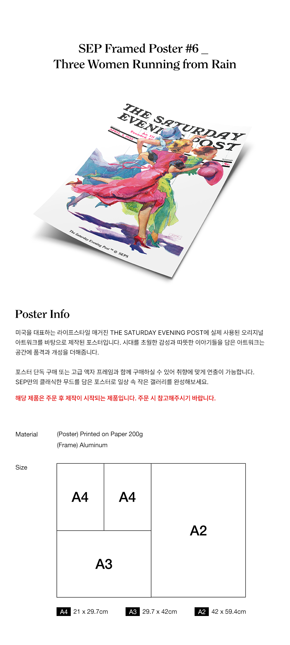 해당 상품은 A2 규격 포스터와 알루미늄 프레임이 포함된 단일 상품입니다. (타 사이즈 선택 불가)