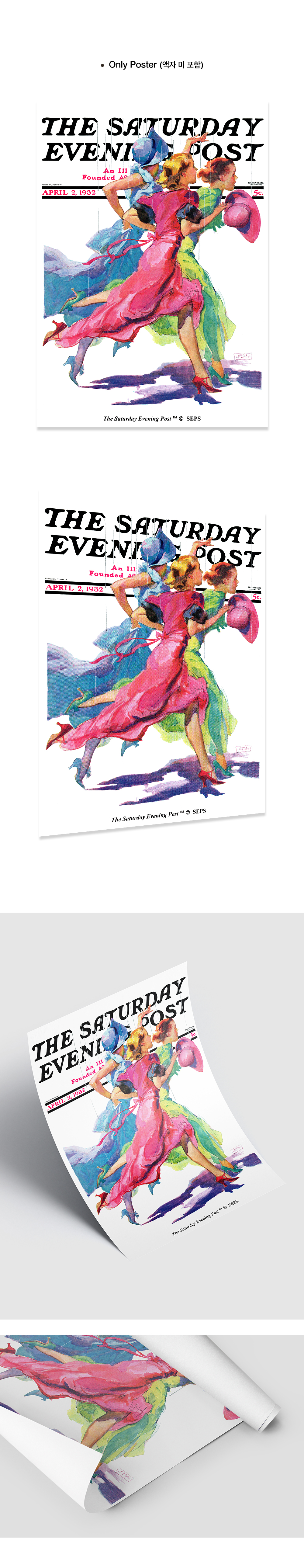 더 새터데이 이브닝 포스트 프레임 포스터_비를 피해 달리는 세 여성_A2