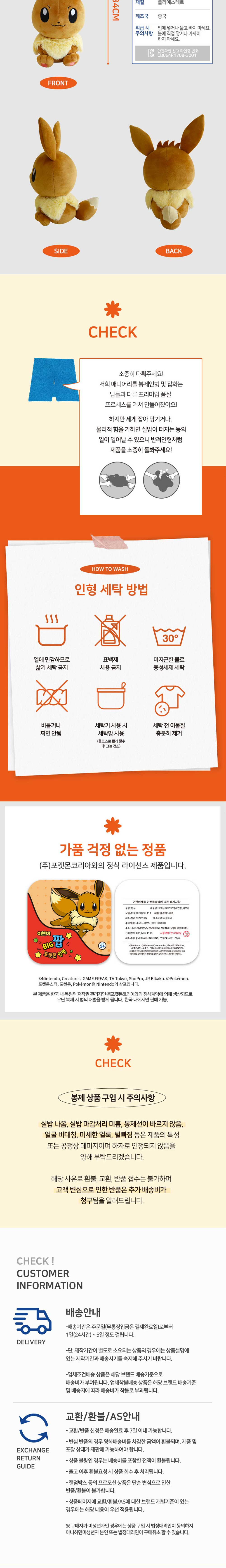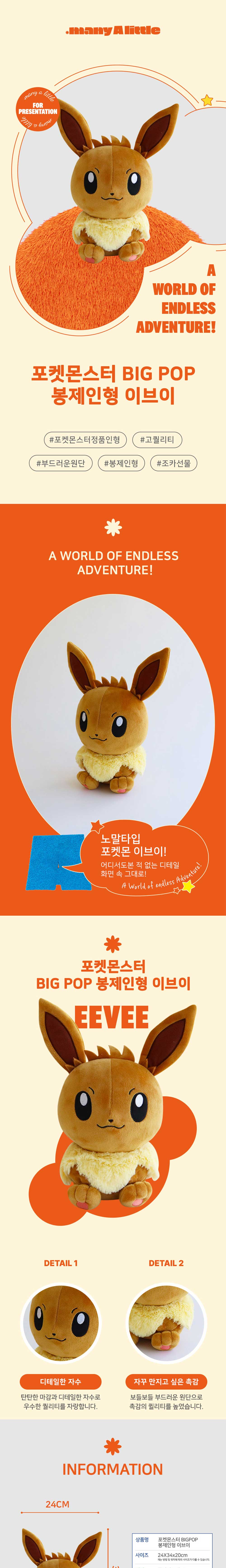 매니어리틀 포켓몬 빅팝 봉제인형 이브이
