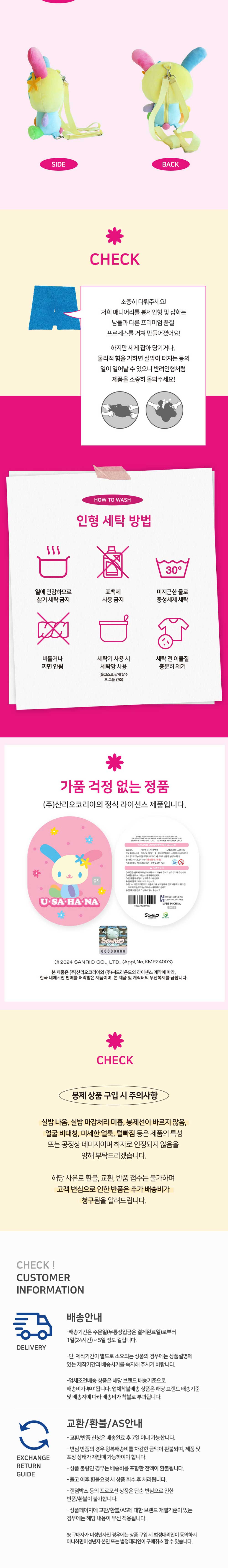 매니어리틀 산리오 우사하나 백팩