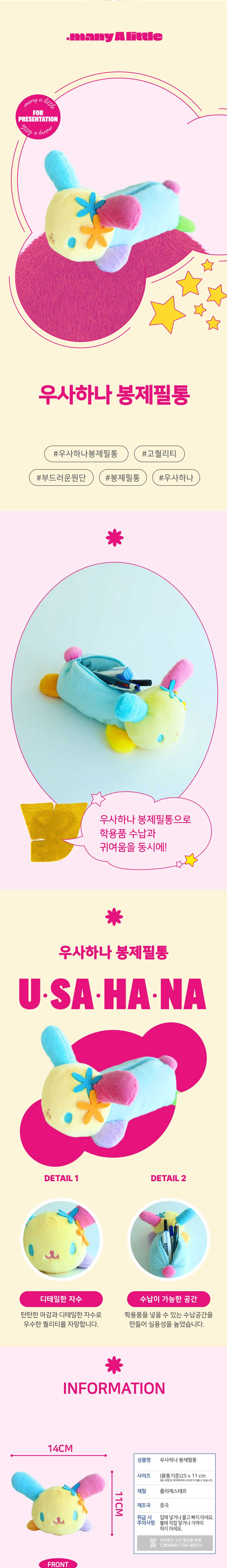 매니어리틀 산리오 우사하나 봉제필통