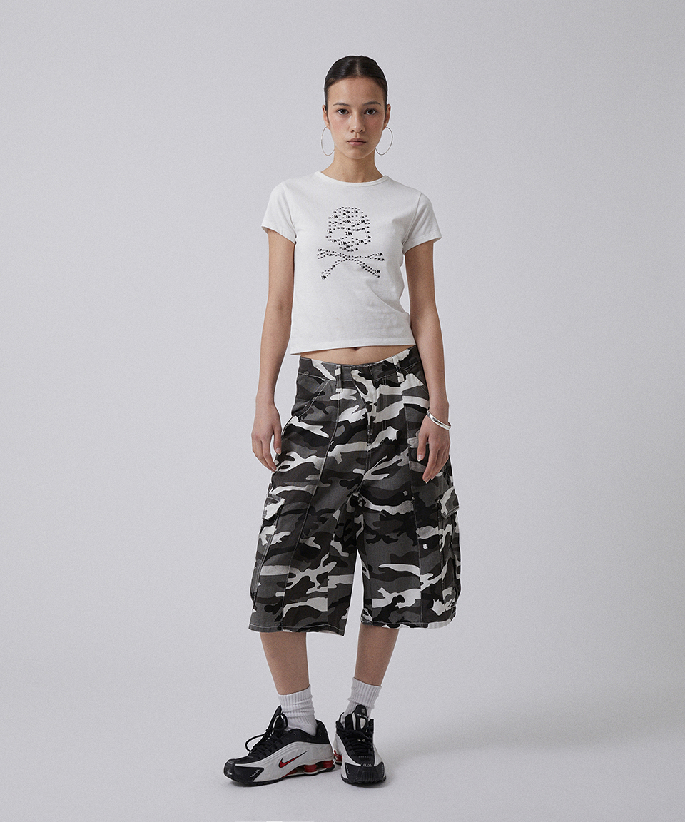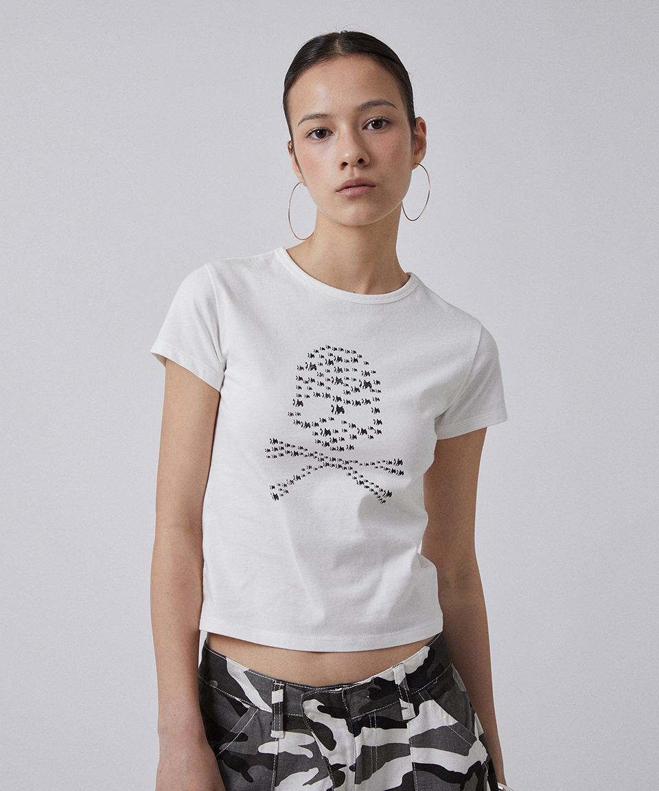 스웨이드 알비노 스컬 크롭 티 오프 화이트