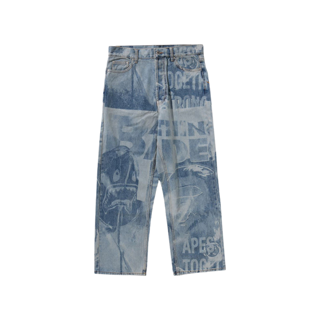 BAPE Overall Lasered Relaxed Fit 13 oz. Denim Pants Light Indigo