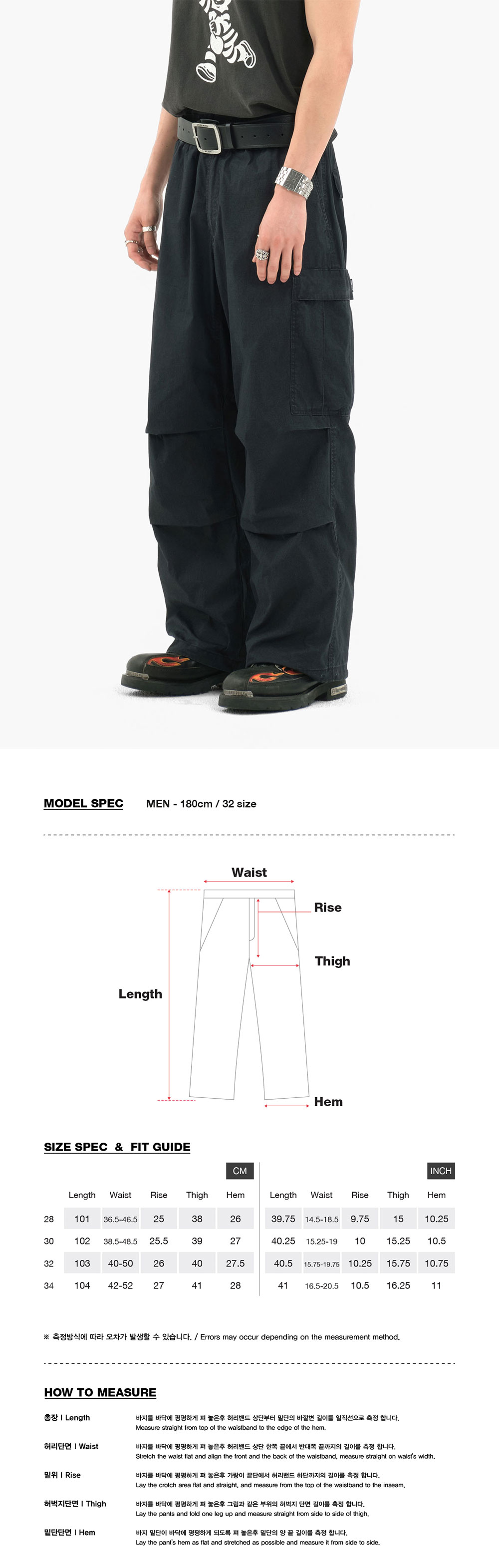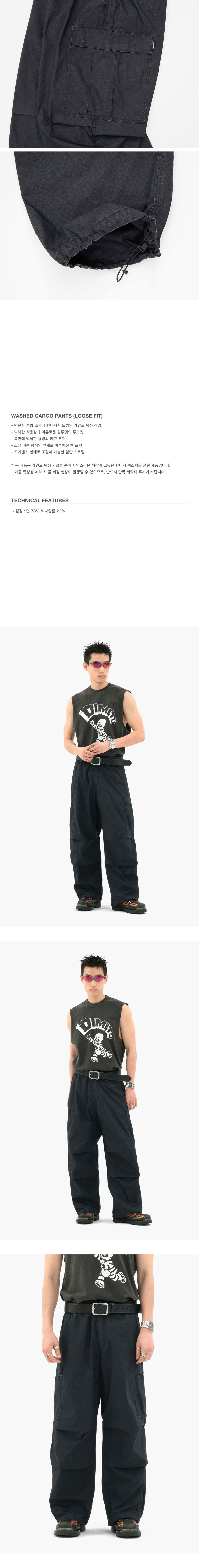 디미토 워시드 카고 팬츠 루즈 핏 블랙