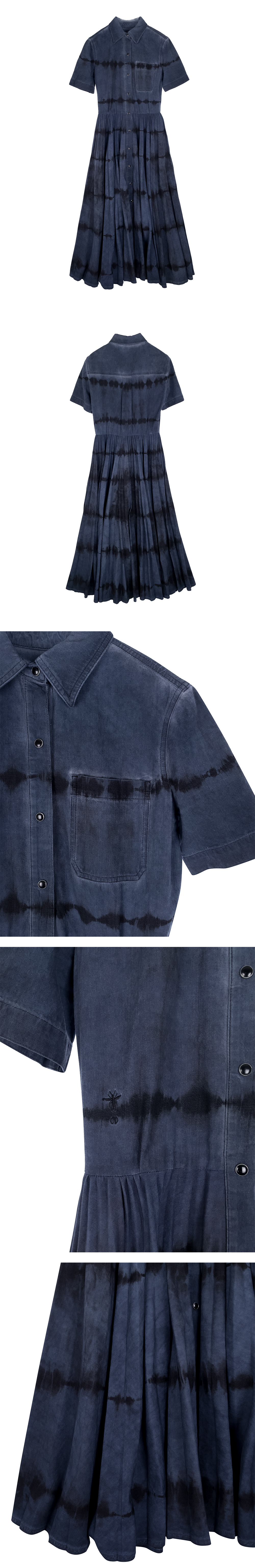 디올 숏슬리브 타이다이 롱 원피스 36 블루/블랙