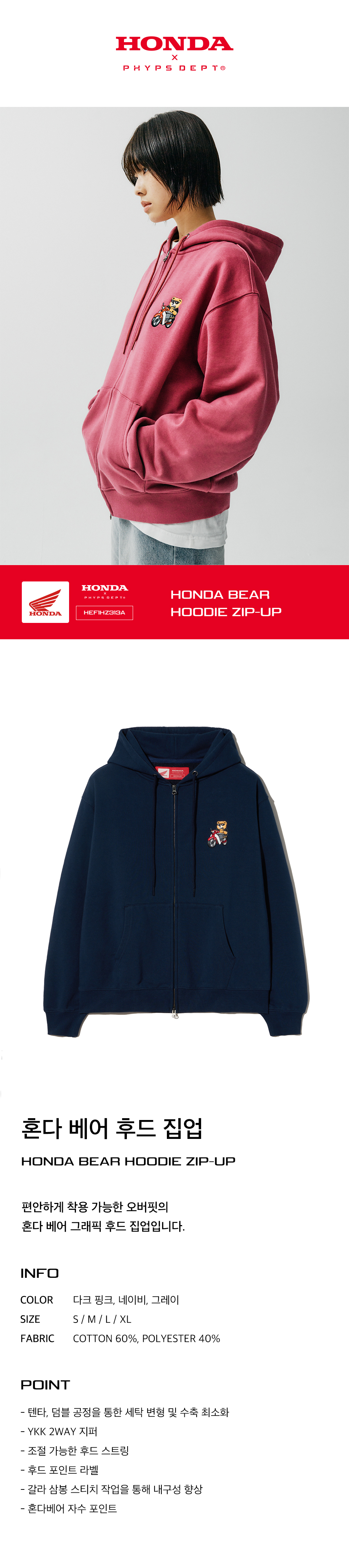 혼다 베어 후드집업 네이비