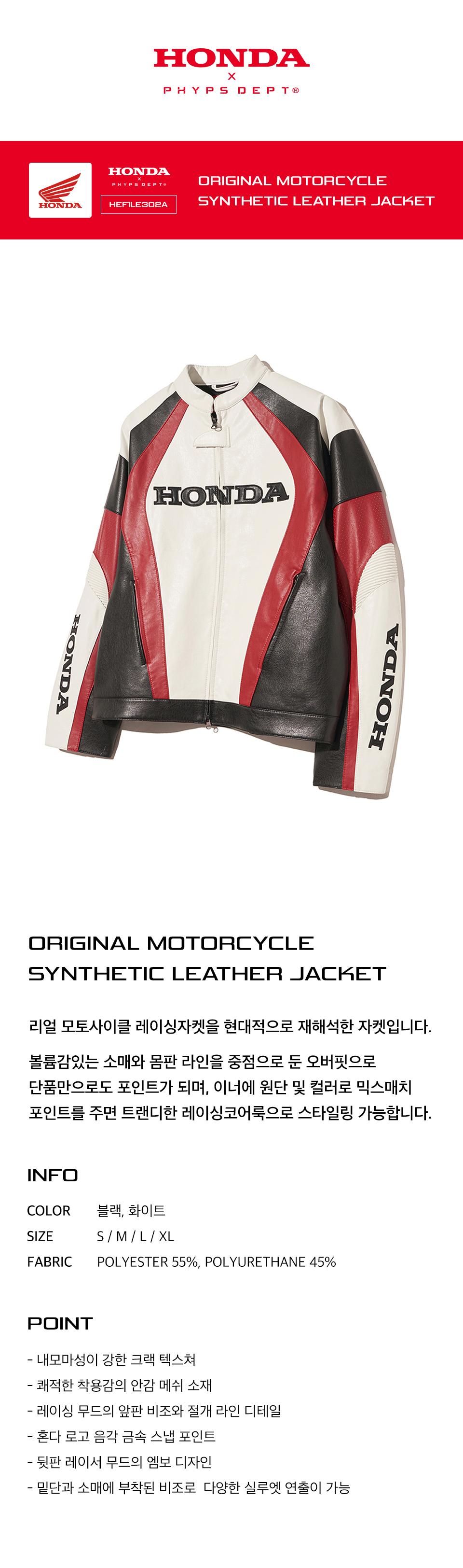 혼다 오리지널 오터사이클 신세틱 레더 자켓 화이트