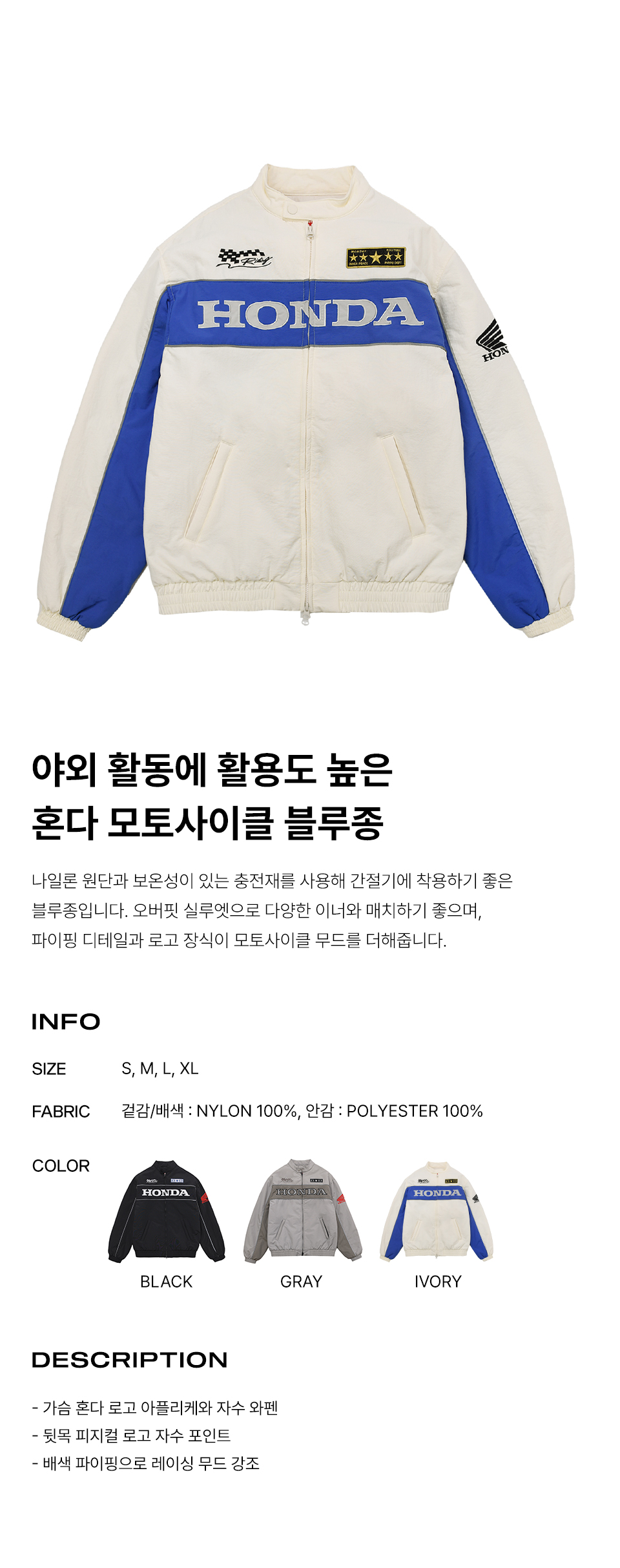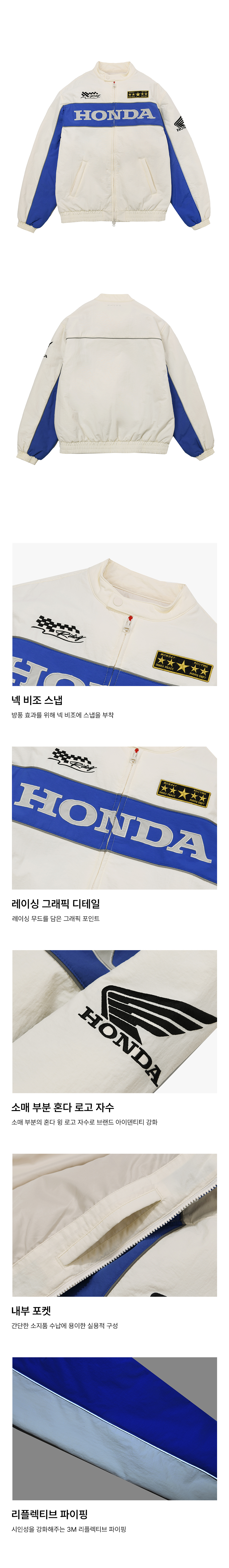 혼다 파이핑 모터사이클 블루종 자켓 아이보리