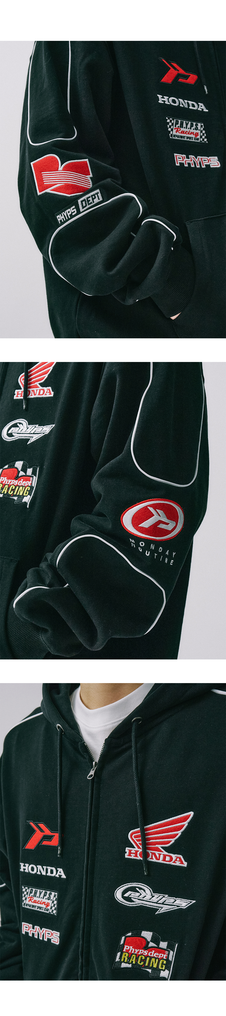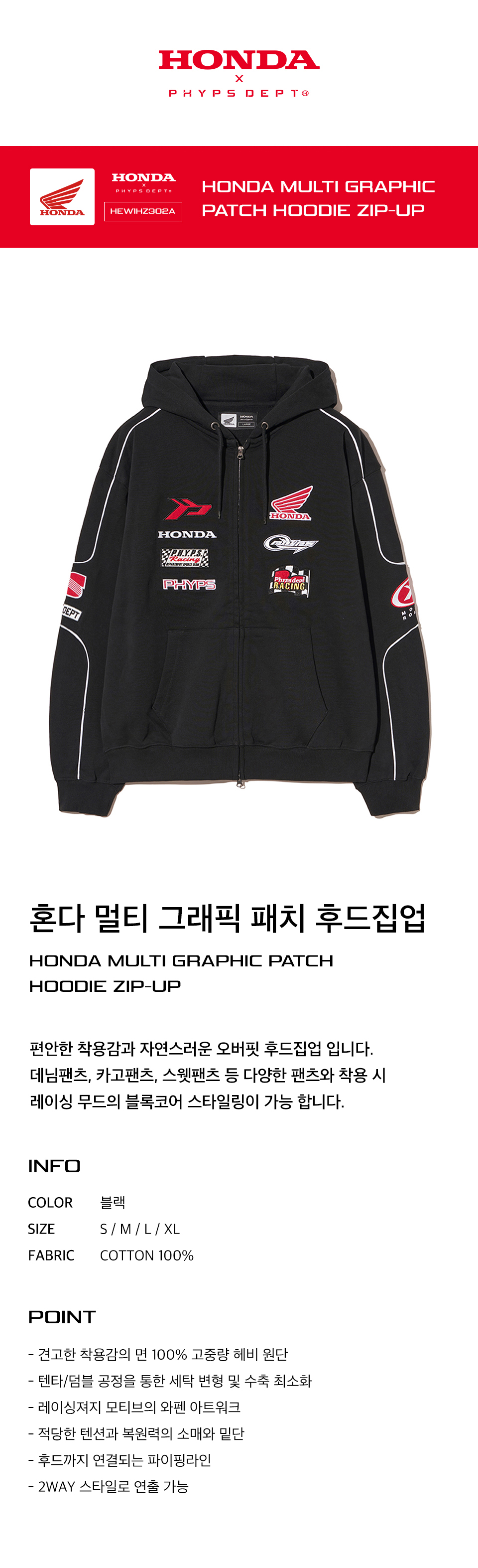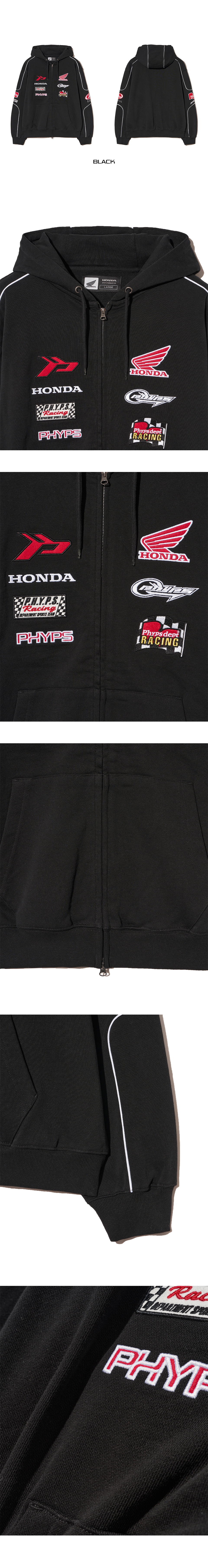 혼다 멀티 그래픽 패치 후드 집업 블랙