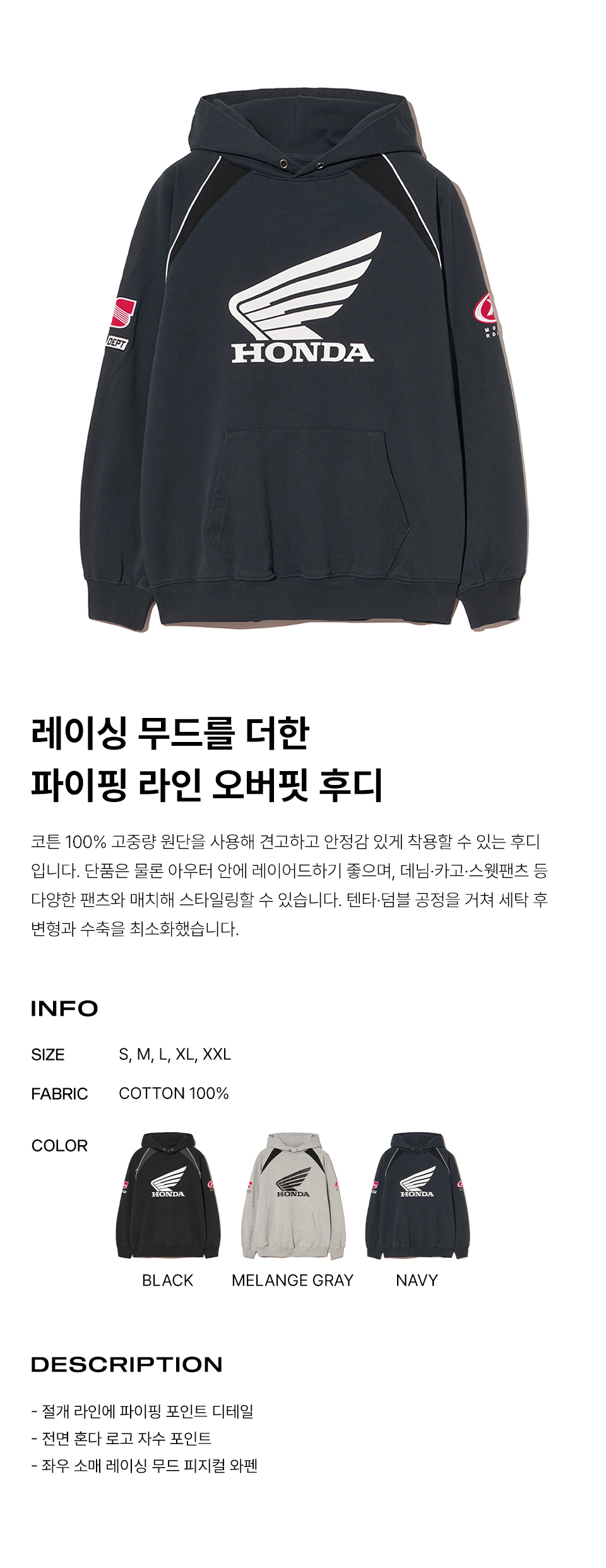 혼다 모터사이클 후드 네이비