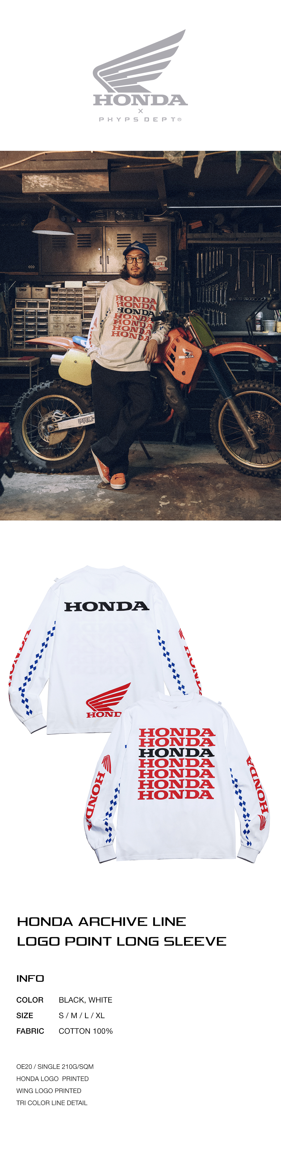 혼다 빈티지 로고 포인트 롱 슬리브 화이트