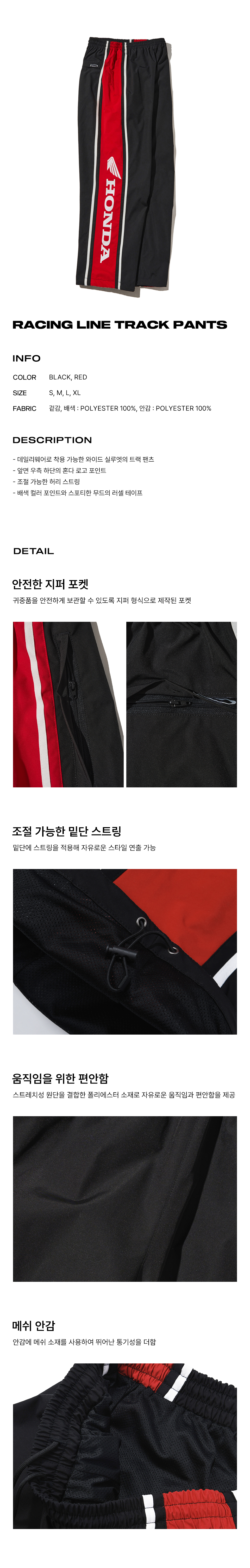 혼다 레이싱 라인 트랙 팬츠 블랙