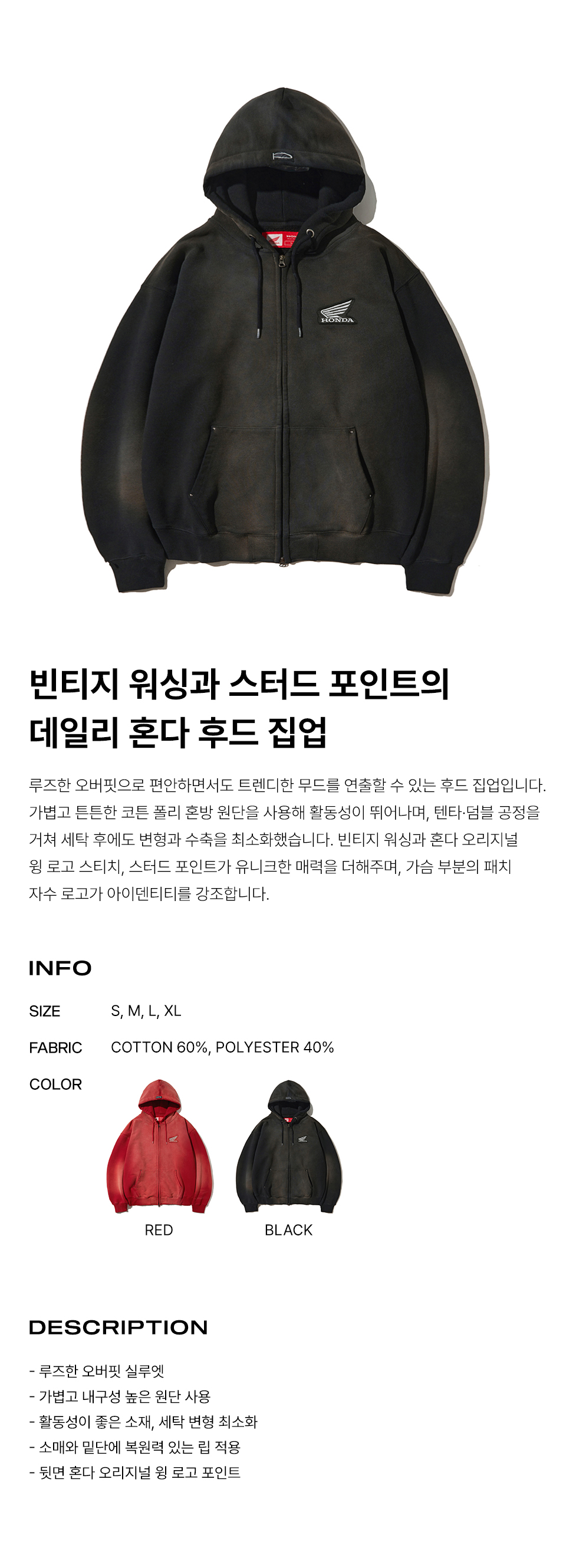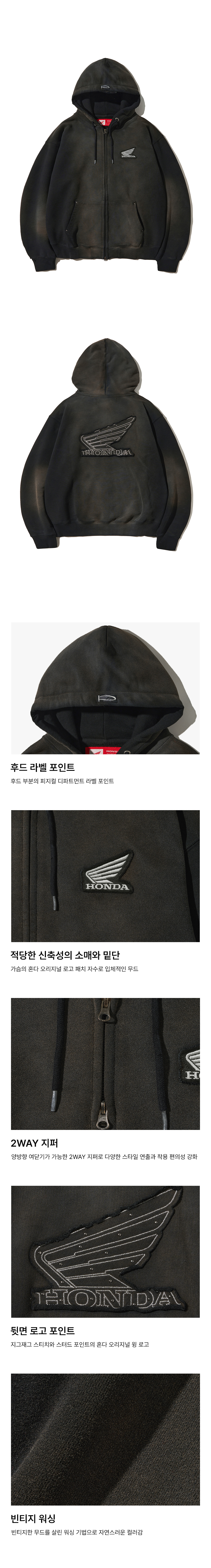 Honda Stud Wing Washing Hoodie Zip-up_Black
