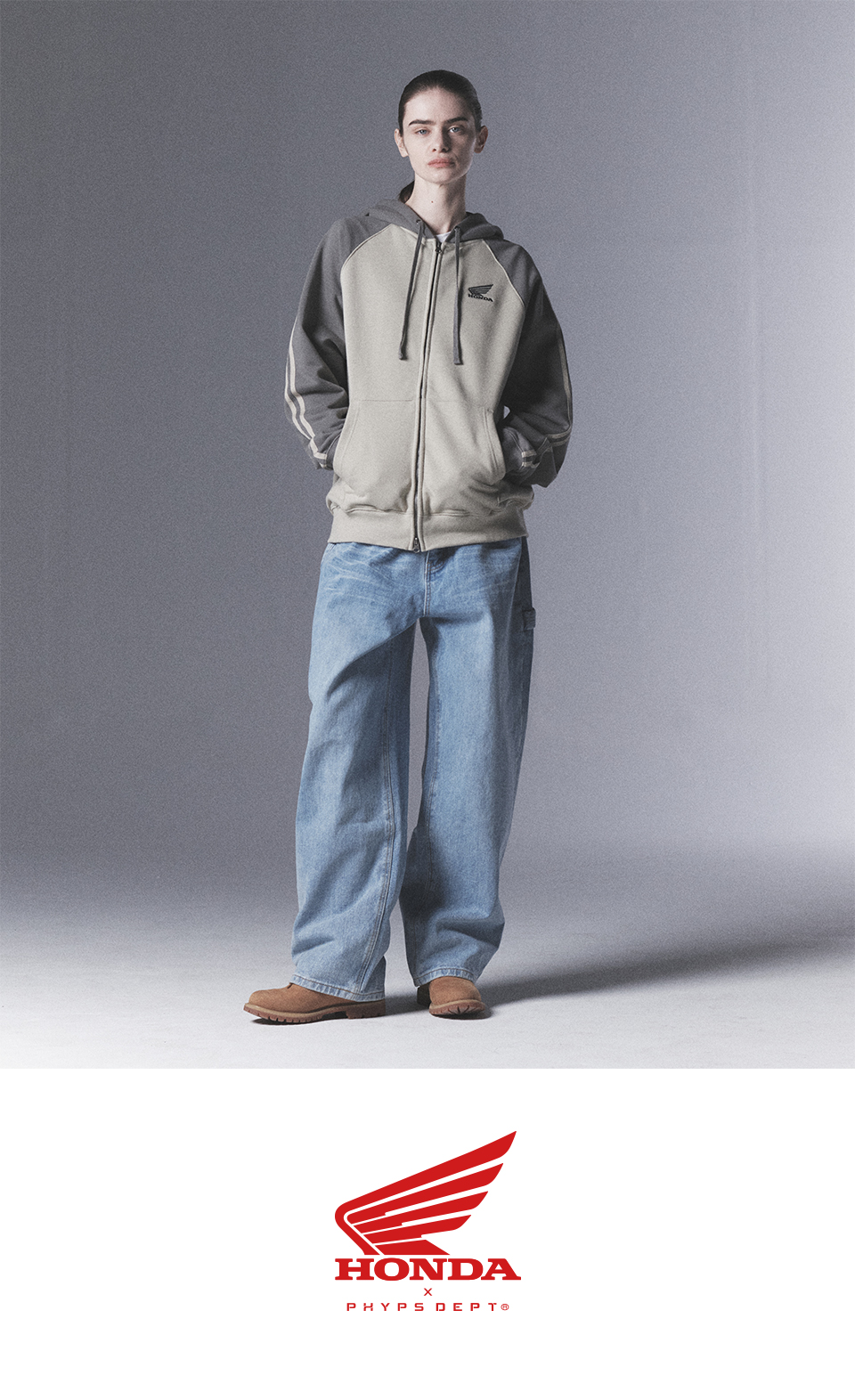 Honda Point logo Raglan Hoodie Zip-up_Gray
