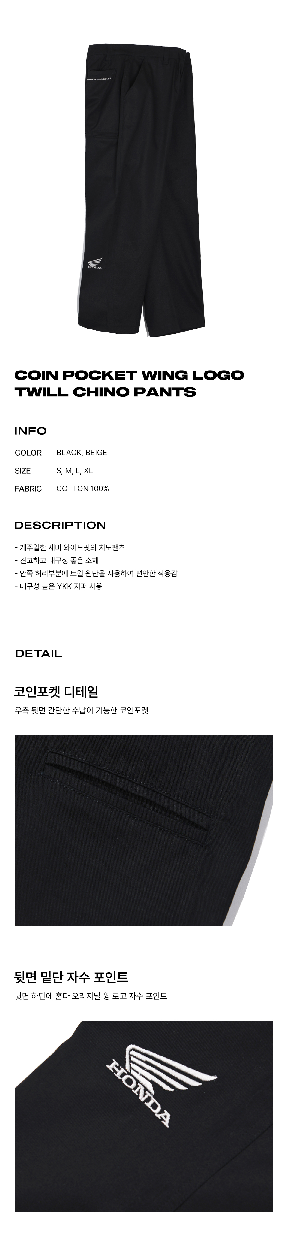혼다 코인 포켓 윙 고로 트윌 치노 팬츠 블랙