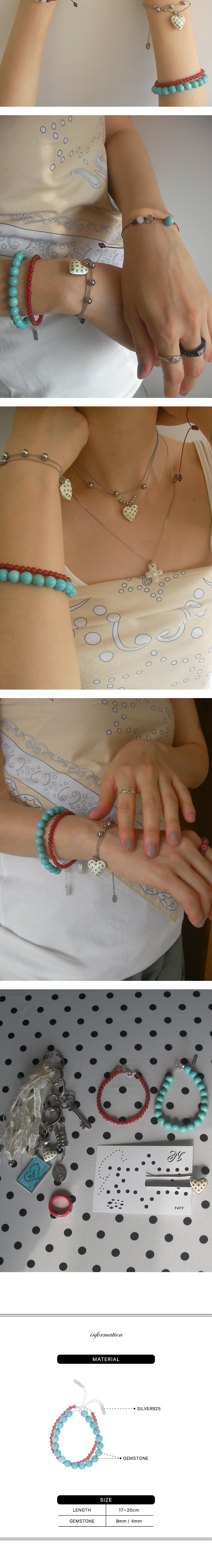 천연 터키석과 자마노의 컬러 매치가 돋보이는 세트 상품입니다. 실버925 체인 마감으로 길이 조절이 가능하며, 단독 또는 레이어드로 착용하기 좋습니다. *주의사항 - 착용할 때는 향수, 크림 및 다른 화학 물질과의 접촉은 피해주세요. 씻거나 로션을 바르기 전에는 반드시 제거해야 합니다. - 착용하지 않을 때는 공기와의 접촉을 최소화할 수 있는 지퍼백이나 상자에 보관하는 것이 좋습니다. - 세척 시 부드러운 천이나 전용 세척제로 부드럽게 닦아주세요.