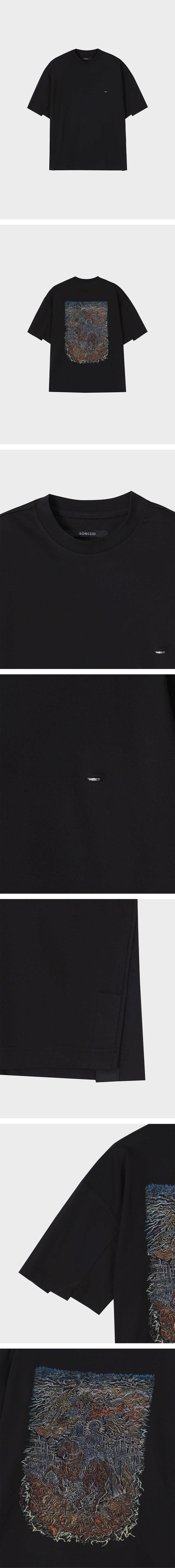 - SONGZIO 컬렉션 KNIGHT EMBROIDERED T SHIRT - 실켓가공을 거친 탄탄한 면 패브릭 - 전면 가슴 SONGZIO AUTOGRAPH 엠브로이드 - 후면 어깨 SONGZIO LOGO 엠브로이드 - 후면 NEEDLE 엠브로이드 기법의 KNIGHT EMBROIDERED 아트워크 - 앞뒤 기장 편차가 있는 컷아웃 슬릿 디테일 - 세미 오버사이즈 실루엣 - MADE IN KOREA