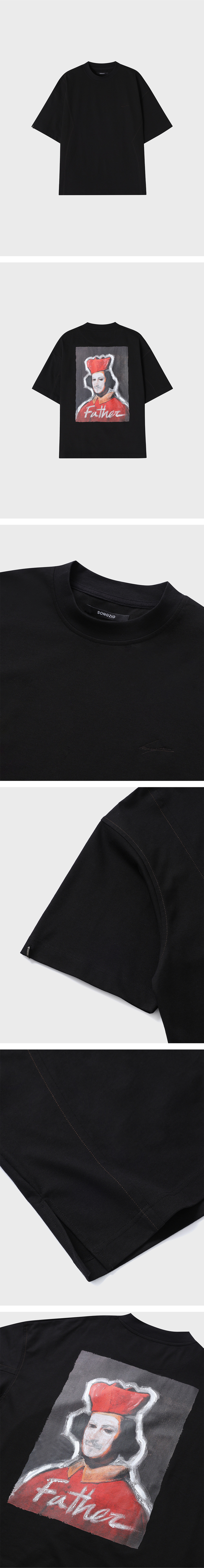 - SONGZIO 컬렉션 CARDINAL PAINTED T SHIRT - 표면감이 느껴지는 내추럴 코튼 패브릭 - 전면 가슴 SONGZIO AUTOGRAPH 엠브로이드 - 후면 DTG 프린트 기법과 핸드프린팅 기법의 CARDINAL PAINTED 아트워크 - 몸 판과 소매 컷아웃 디테일과 배색 스티치 디테일 - 우측 소매단 SONGZIO 시그니처 링 브로치 - 오버사이즈 실루엣 - MADE IN KOREA