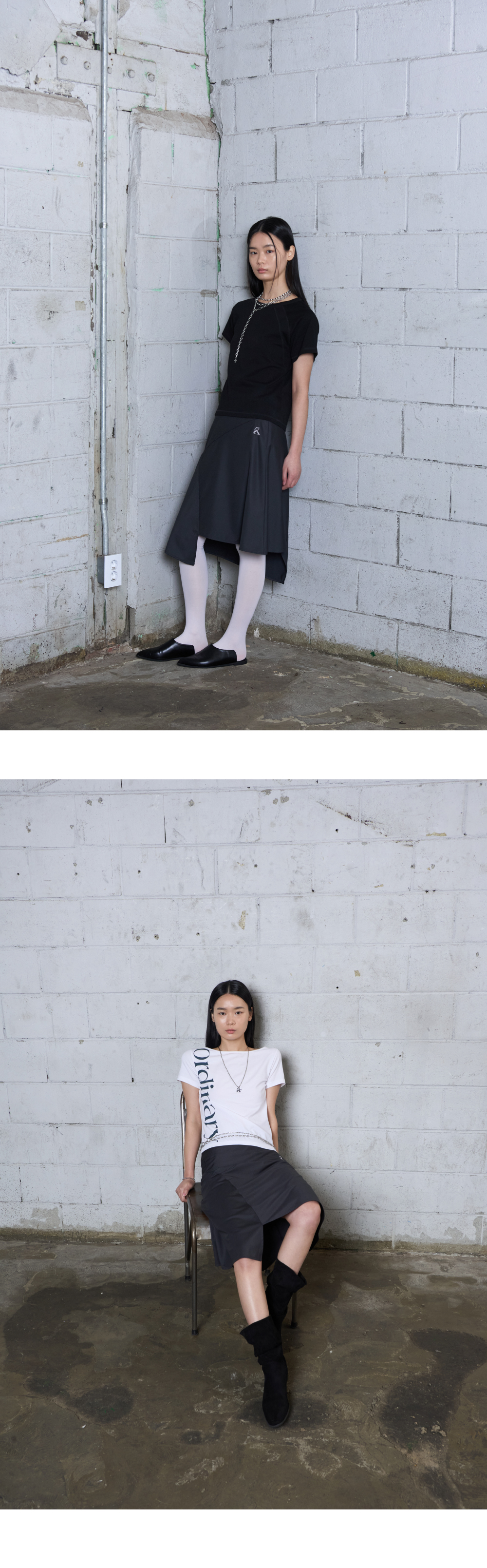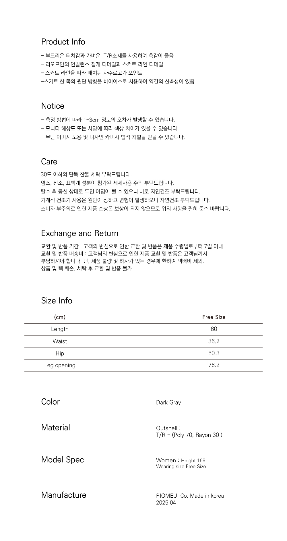 리오므 어시메트릭 미디 스커트 다크 그레이