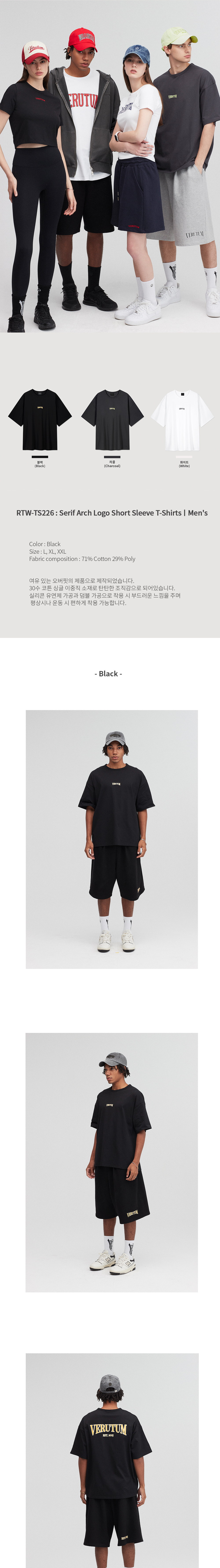 베루툼 세리프 아치 로고 쇼츠 슬리브 티셔츠 맨즈 블랙