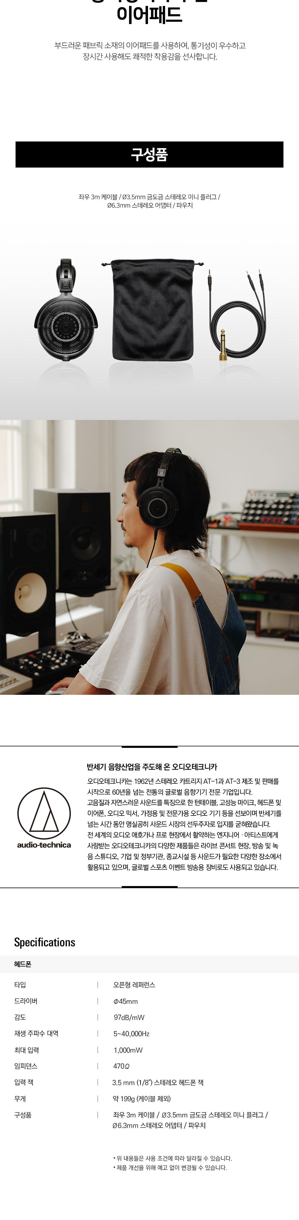 오디오테크니카 공식수입원 ATH-R70xa 오픈형 프로페셔널 모니터링 헤드폰