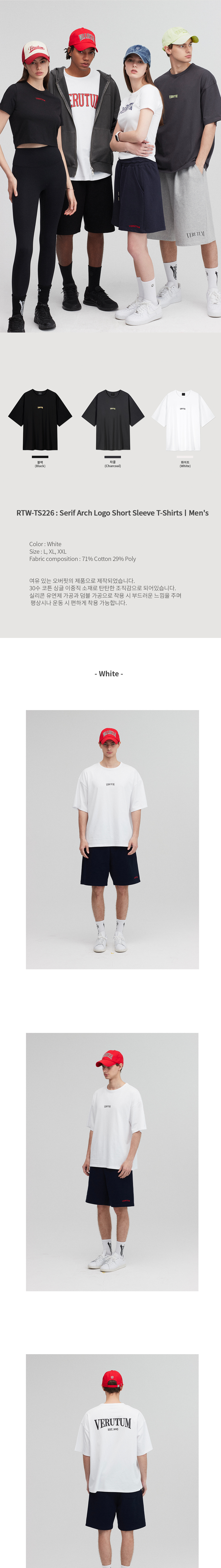 베루툼 세리프 아치 로고 쇼츠 슬리브 티셔츠 맨즈 화이트