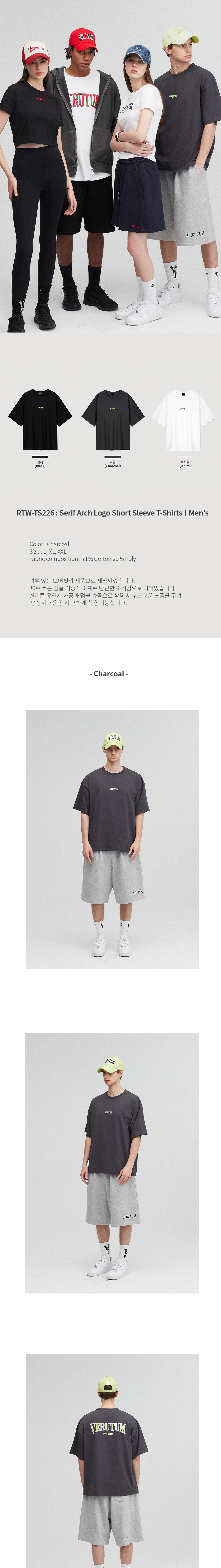 베루툼 세리프 아치 로고 쇼츠 슬리브 티셔츠 맨즈 차콜