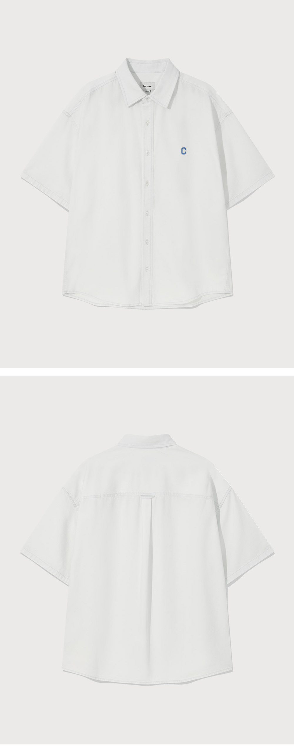 커버낫 C 로고 데님 하프 셔츠 화이트