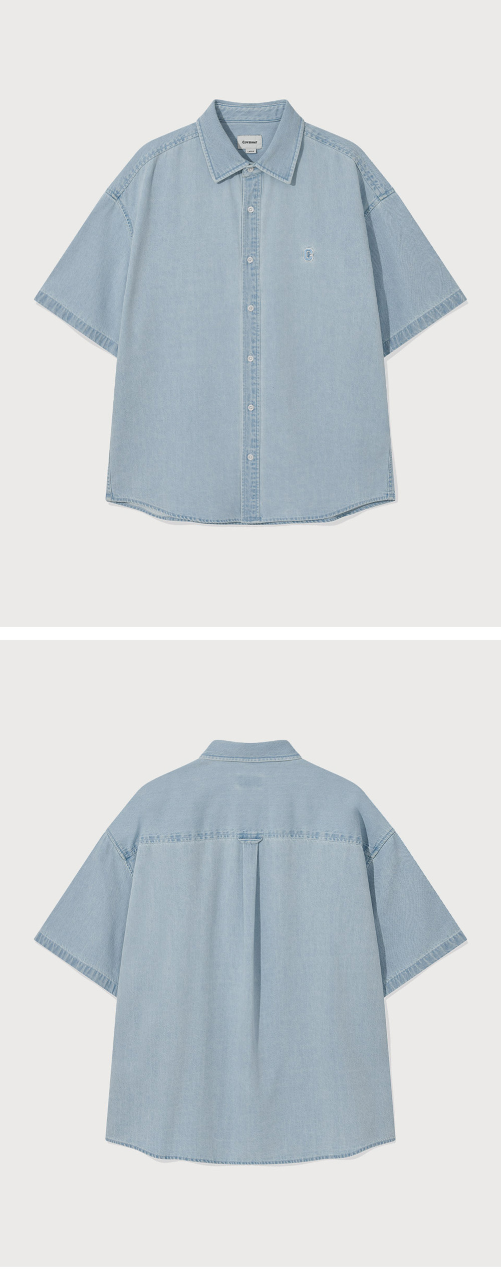 커버낫 C 로고 데님 하프 셔츠 라이트 블루