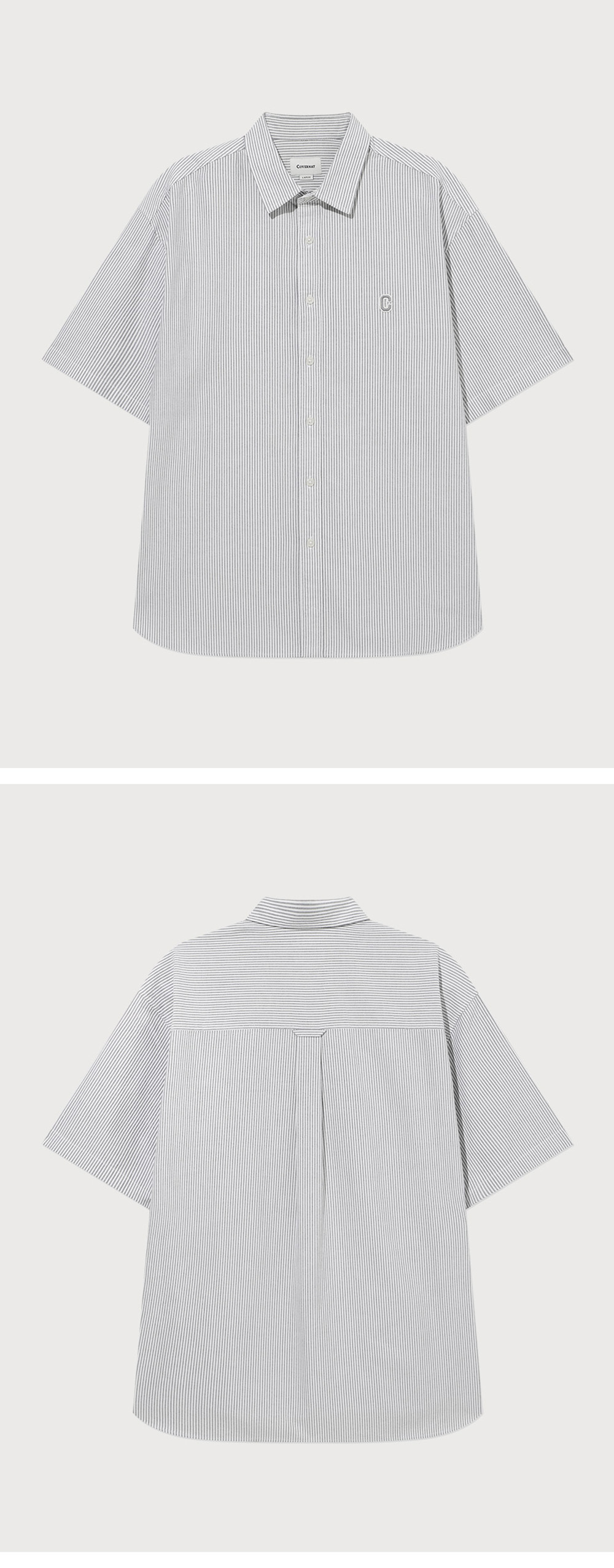 커버낫 C 로고 옥스포드 스트라이프 하프 셔츠 그레이