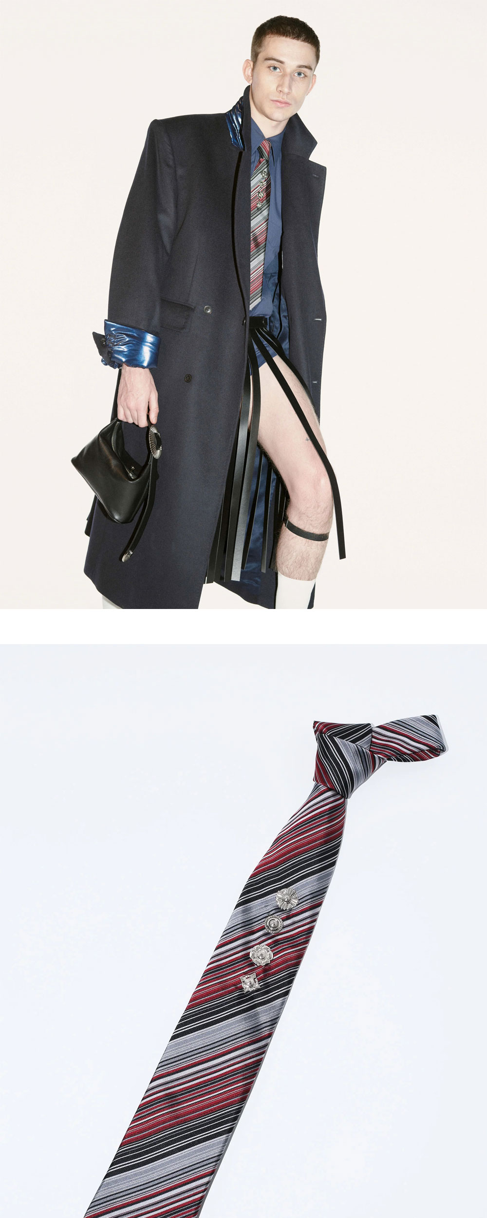 메탈 콘초 디테일이 유니크한 토가 투의 타이입니다. - 메탈 콘초 장식의 타이 - 실버 톤 메탈 스터드 디테일