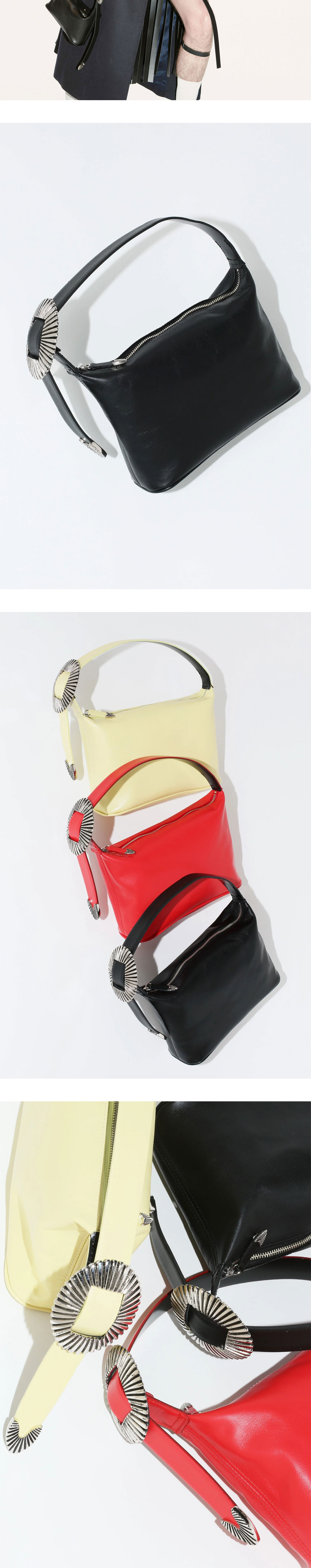 큰 합금 장식이 매력적인 토가 투의 레더 미니 백입니다. - 조절 가능한 핸드 스트랩 - 지퍼로 여닫는 디자인