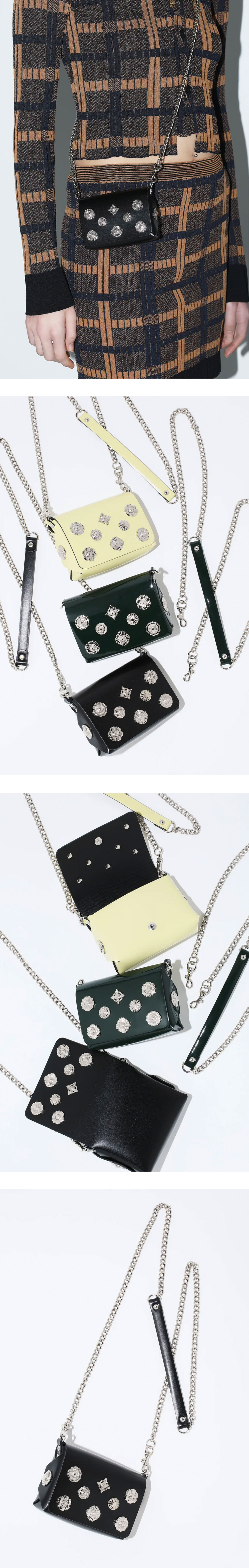 메탈 콘초 디테일이 유니크한 토가 투의 체인백입니다. - 체인 스트랩 탈부착이 가능해 파우치로도 활용 가능 - "TOGA TOO"의 시그니처인 메탈 콘초 장식 - 스냅 버튼 여밈