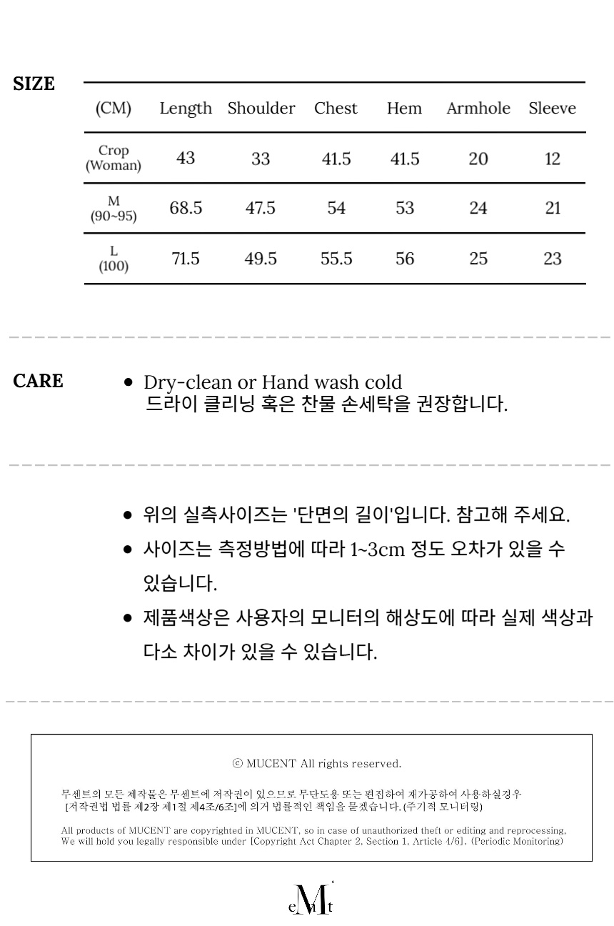 측정 방법에 따라 사이즈에 일부 오차가 있을 수 있습니다.