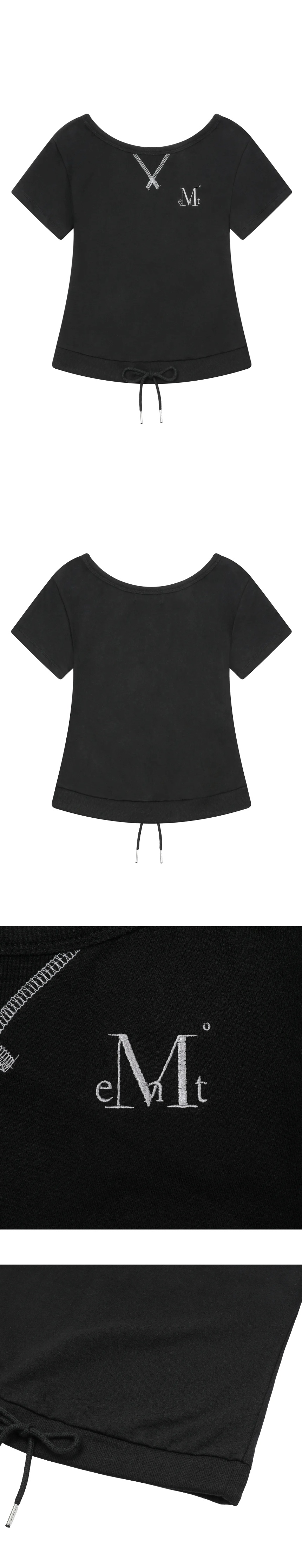 무센트 슬로프 후디 디테일 크롭 보트넥 반팔 티 블랙