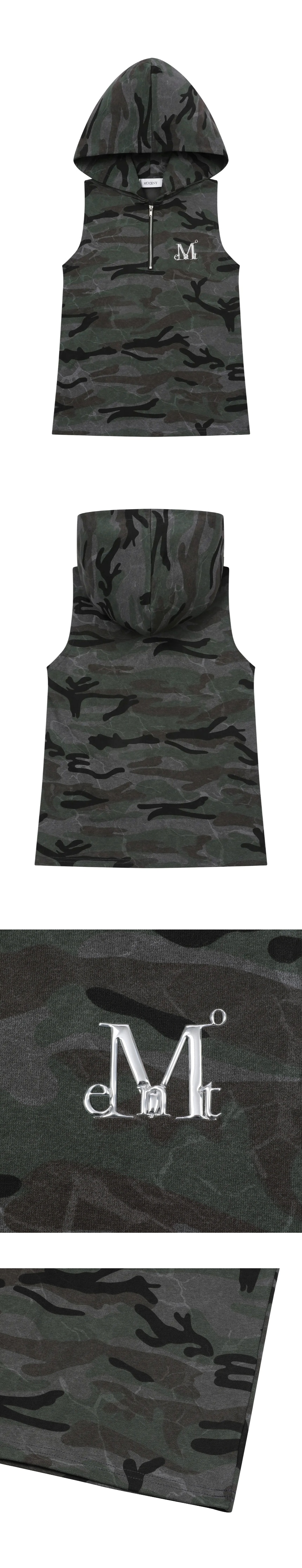 무센트 켈린 메탈 로고 카모 후드 슬리브리스 그레이
