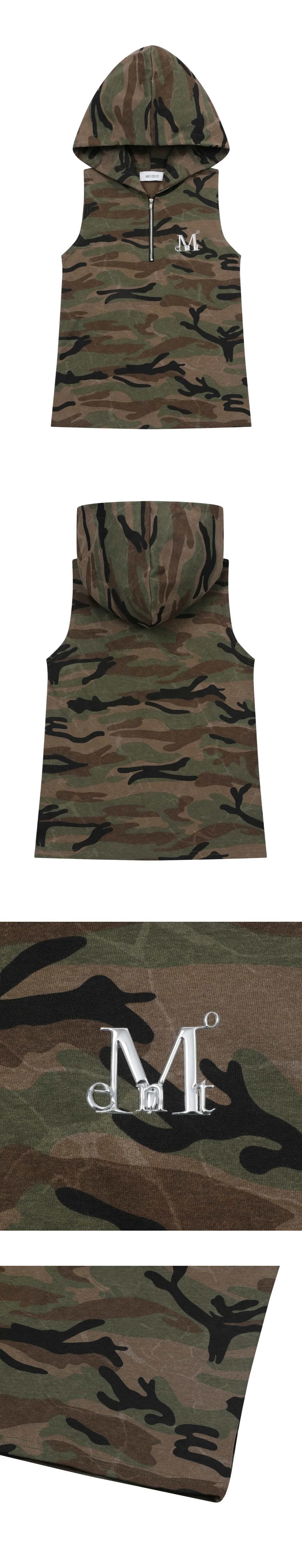 무센트 켈린 메탈 로고 카모 후드 슬리브리스 카키