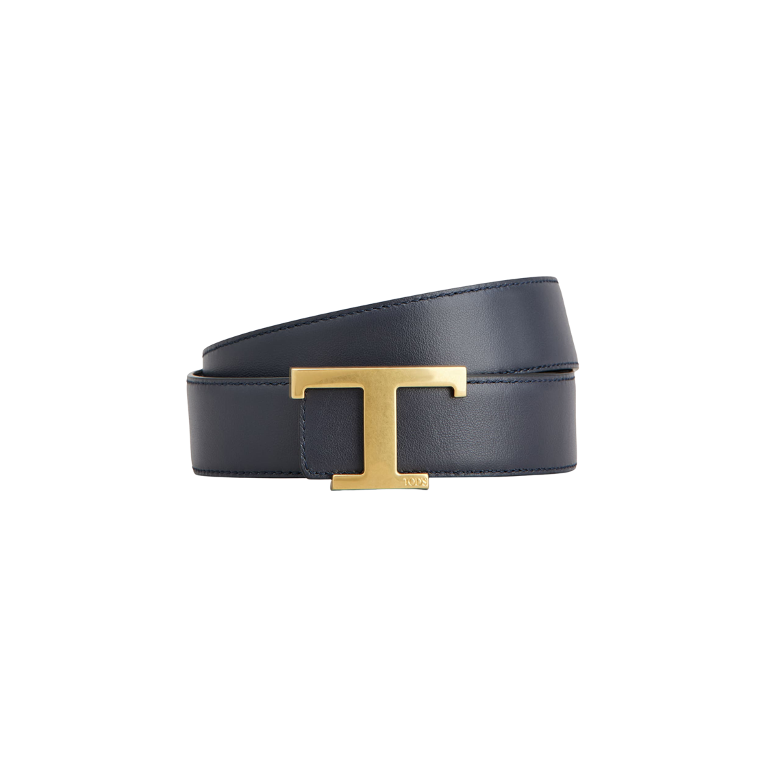 Tod's T Timeless Reversible Belt in Leather Blue Black