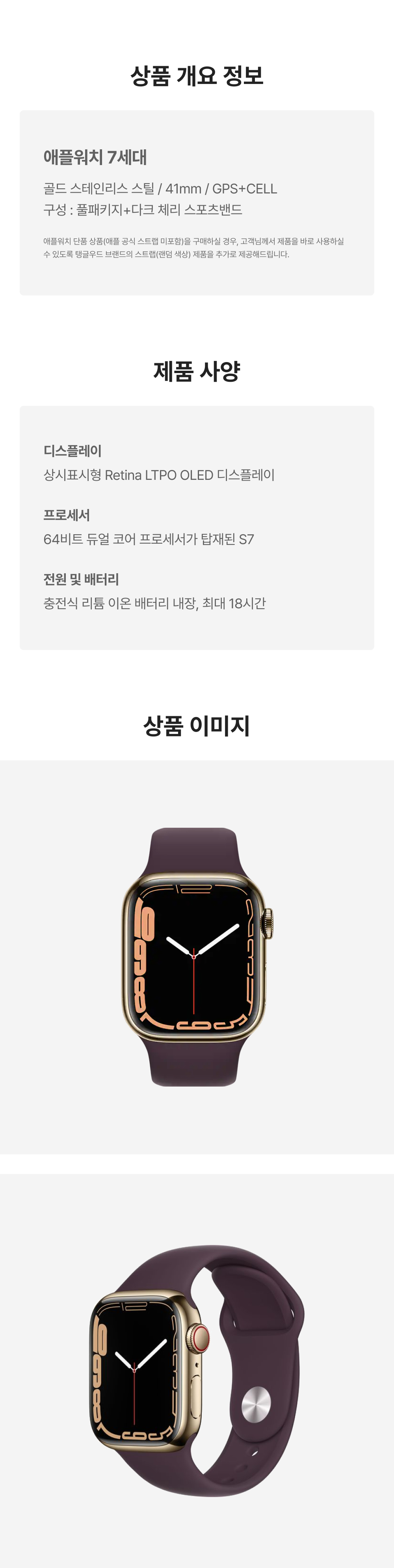 [B등급] 리퍼비시 애플워치 7 41mm 셀룰러 골드 스테인리스 스틸 케이스 스포츠 밴드 다크 체리