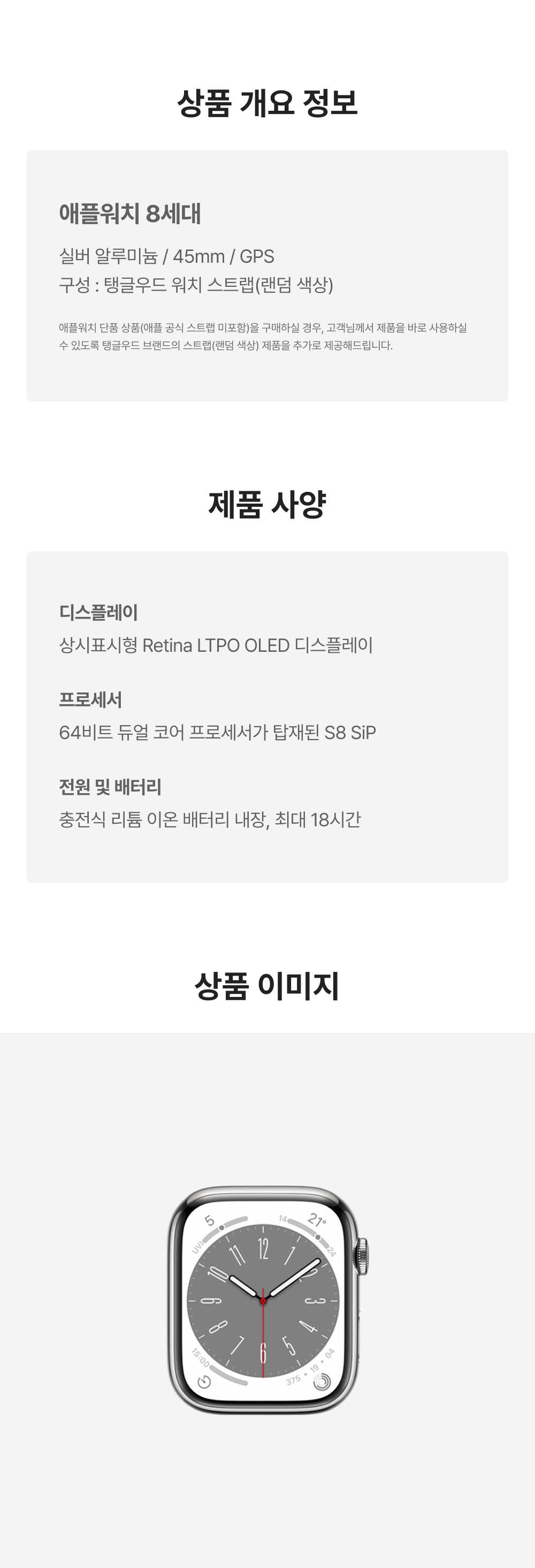 [B등급] 리퍼비시 애플워치 8 45mm GPS 실버 알루미늄 케이스