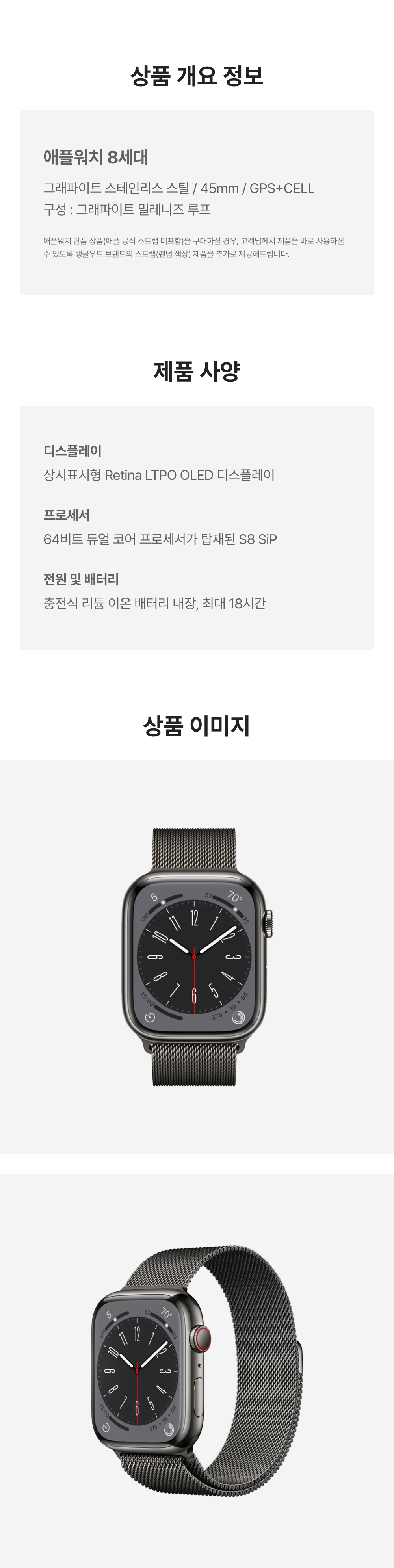 [B등급] 리퍼비시 애플워치 8 45mm 셀룰러 그래파이트 스테인리스 스틸 케이스 밀레니즈 루프 그래파이트