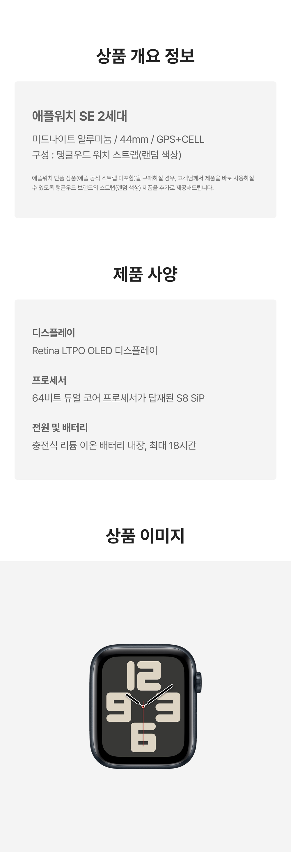 [S등급] 리퍼비시 애플워치 SE 2세대 44mm 셀룰러 미드나이트 알루미늄 케이스