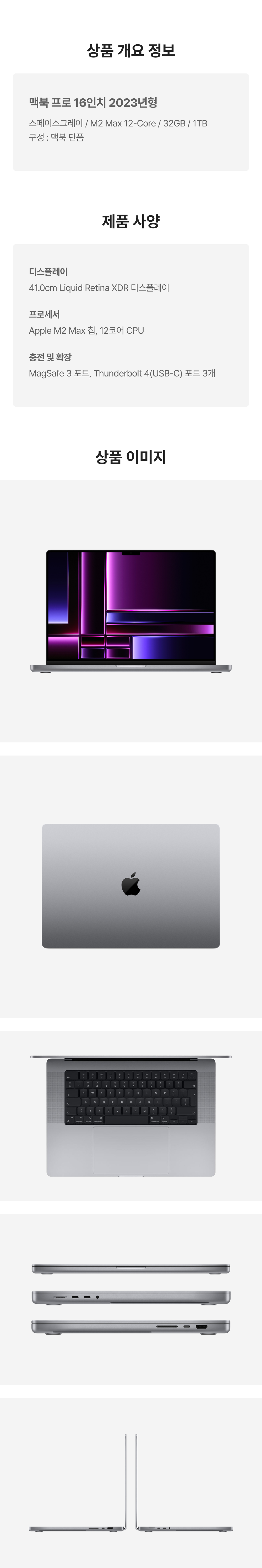[B등급] 리퍼비시 2023 맥북 프로 16 M2 Max 12c 1테라 SSD 32기가 램 스페이스그레이