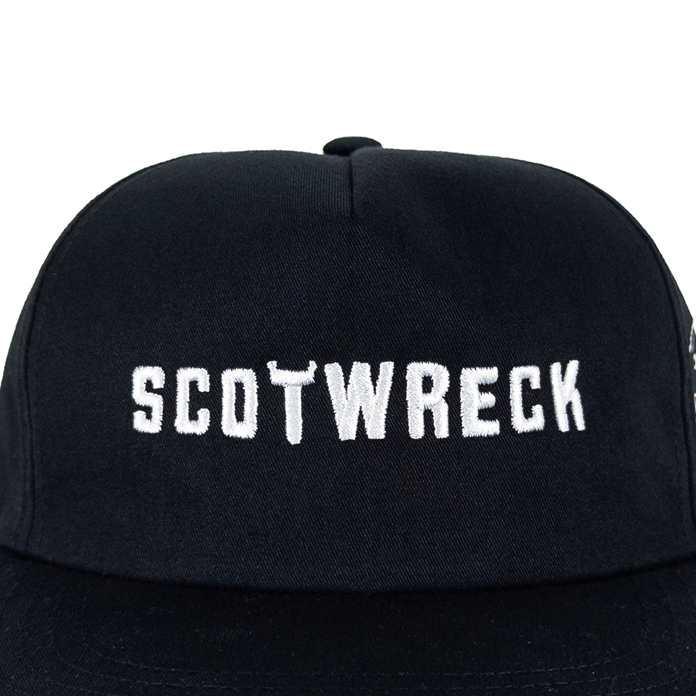 • 5-Panel Hat • Front and side embroidery • 60% Cotton, 40% Polyester • 'The scot wreck' woven label inside • Visor can be bent to suit your style.