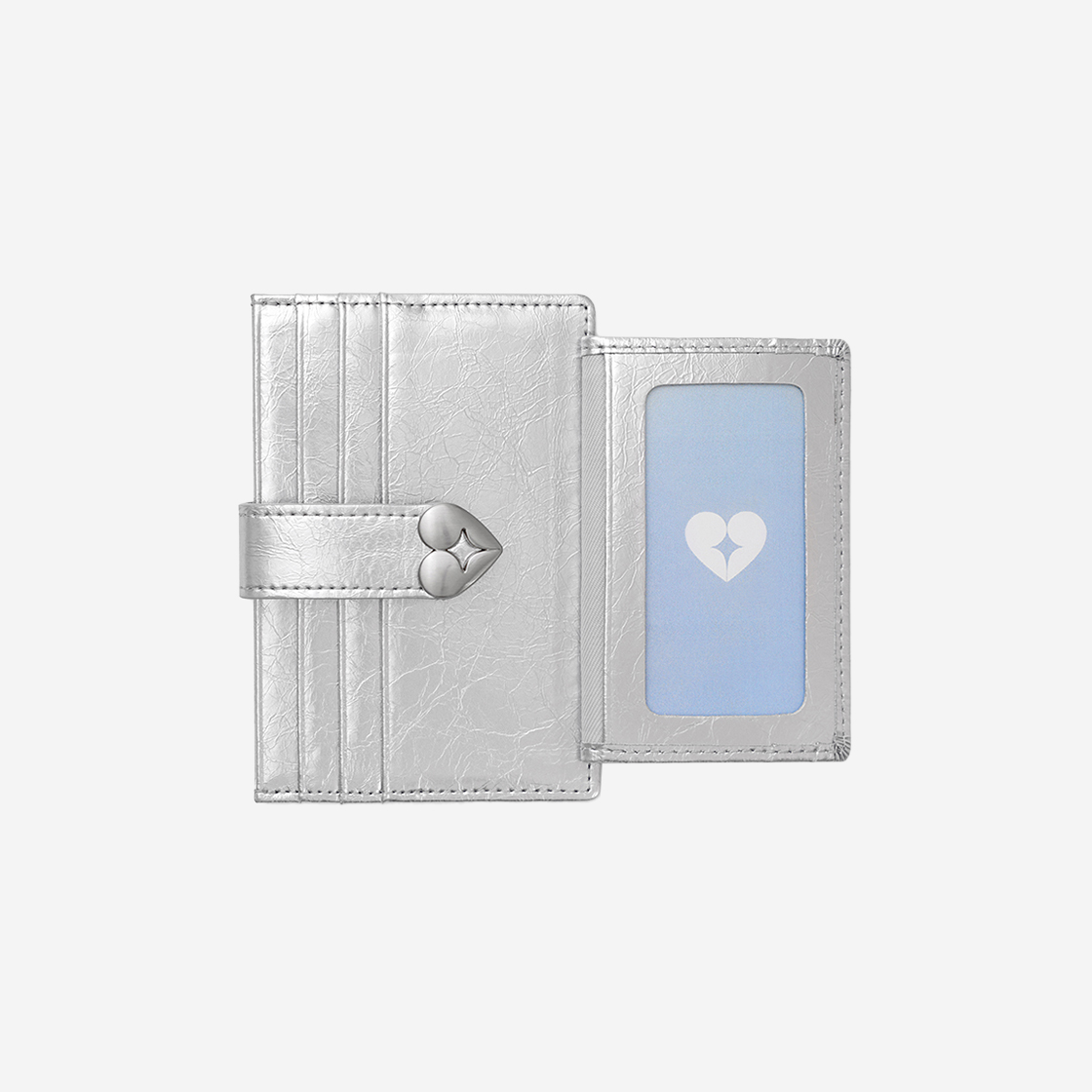 - 광택감이 돋보이는 크링클 텍스처 소가죽 - 와이드 한 형태감과 멀티 수납이 가능한 카드 포켓 - 포토카드, 신분증 수납이 가능한 투명 PVC 칸과 하트 로고 장식이 포인트 - 카드칸 6, 투명 카드칸 1, 지퍼칸 1