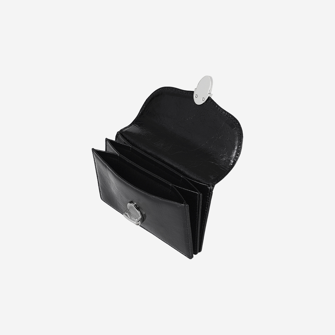 - 광택감이 돋보이는 크링클 텍스처 소가죽 - 클래식한 오발 형태의 니켈 사틴 잠금 장식이 포인트 - 아코디언 카드칸 3, 외부 카드칸 1