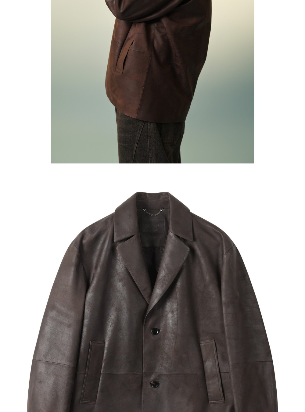 커스텀멜로우 베지터블 가죽 자켓 브라운
